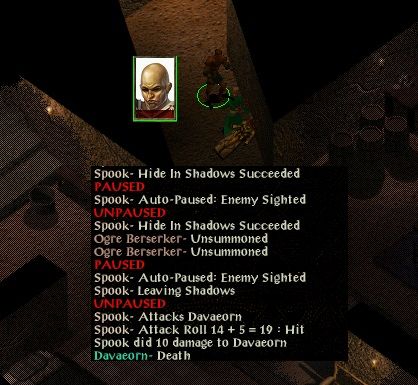 Moving on to the Bandit Camp, Cower led the way with his backstabbing staff, though Johnnie helped out a bit with sleeps and magic missiles. In the main tent Johnnie played a larger role by charming Hakt (who helped kill Venkt) and then Britik (who helped deal with Raemon). As a reward Johnnie was treated to the purchase of a skull trap scroll at High Hedge before moving on to the Cloakwood.