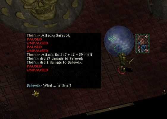 Thorin's begun his new life by working his way through to Sarevok - having no trouble there. He used magic support (such as Amulet of Shielding) rather more than I normally bother with and was never really threatened. The only worrying moment was me mis-clicking on the conversation option with Belt saying kill Sarevok immediately - fortunately that one offered a second chance when Belt asked if perhaps Thorin had any documentation to back up his accusation.