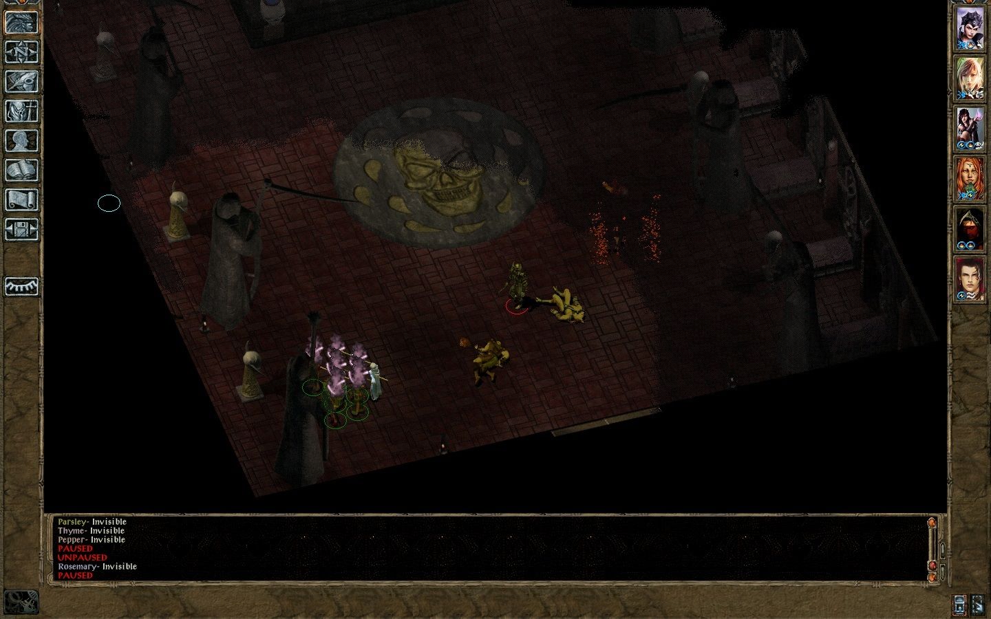 It was time to engage Degrodel's minions - we had massive summons, but we weren't going to leave anything to chance and did maximum buffs as well. The mages did well and didn't take much damage, except Blaster, who is one of the few mages who don't know mirror image (she flubbed it when she attempted to scribe it), so she got hurt bad and had to leave the premises. The other mages and summons got the job done, however.