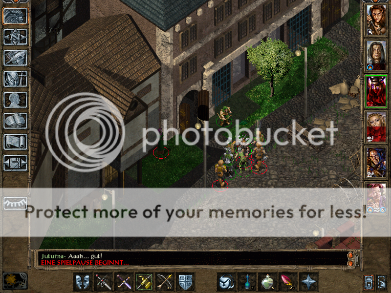 One fight was actually surprisingly tough, propably because I thought it would be easy and didn't use any summons and buffs: Wiven in south-western Baldur's Gate forced the party to leave the house, with Juturna getting hurt and having to drink potions. Nerthus also was in bad shape. I learned that my party is still terrible at straight up fighting, so I had my divine spellcasters use their wand of heaven charges, which eventually won me the battle (though some commoners are hostile now).