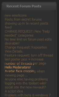 The "hello moderators" seekrit thread is showing up in the recent forum posts list. It probably shouldn't do that