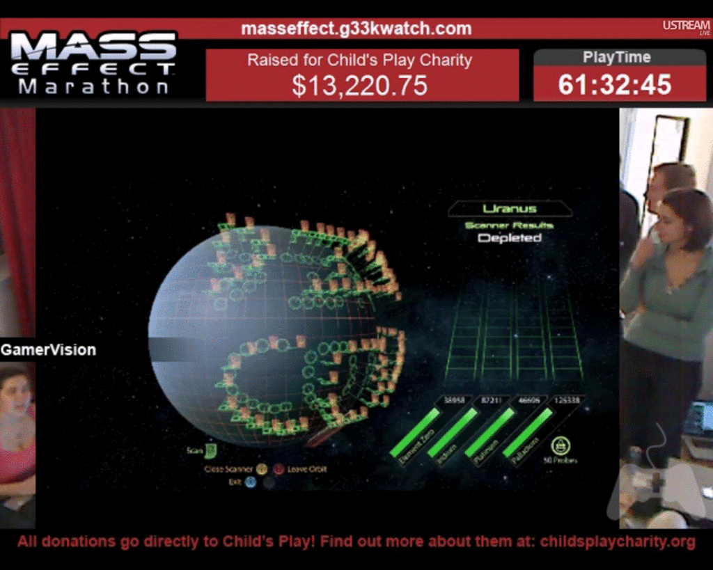 I'm not knocking this or anything... but... Desert Bus I get. I don't understand what playing both Mass Effects multiple times is supposed to accomplish. I keep seeing these copycat game runs for Child's Play (and they are copycat, no matter if that is a positive or negative to the sum) popping up. I don't get it. With Desert Bus, there is a system in place to regulate donations, they drive until the amount of money required for them to go an extra hour is inaccessible. With a linear game like Mass Effect, that has a set number of quests and secrets.... how do you regulate that?