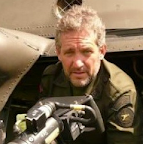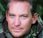 Not sure who the voice is, but he is certainly not The Bean. However, the phizog sure looks like to me a young/idealised Chris Ryan, the other ex-SAS thriller writer who was a member the ill-fated Bravo-Two-Zero patrol in GW1. He's middle aged and grizzled now, but that nose and those ears sure look similar.