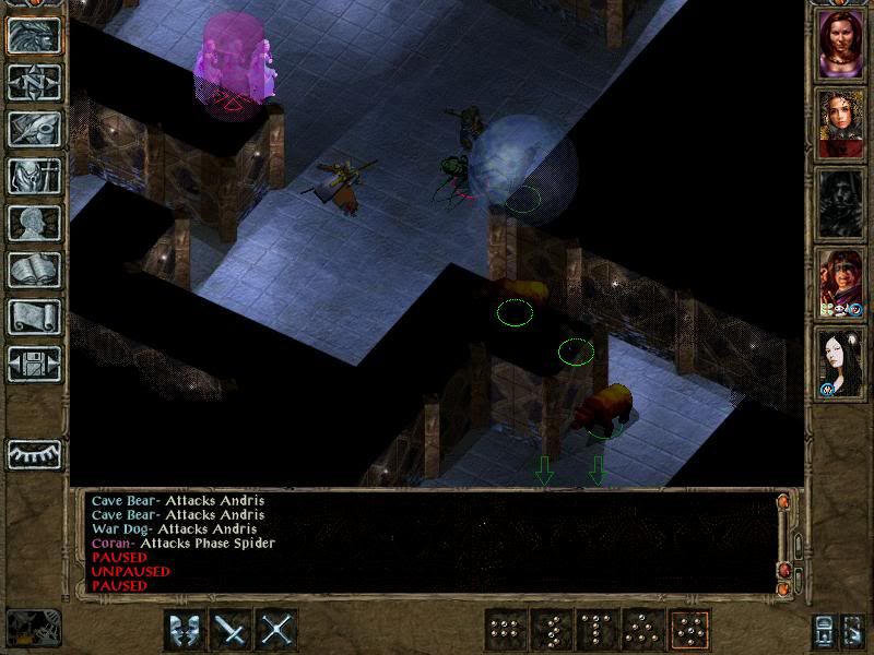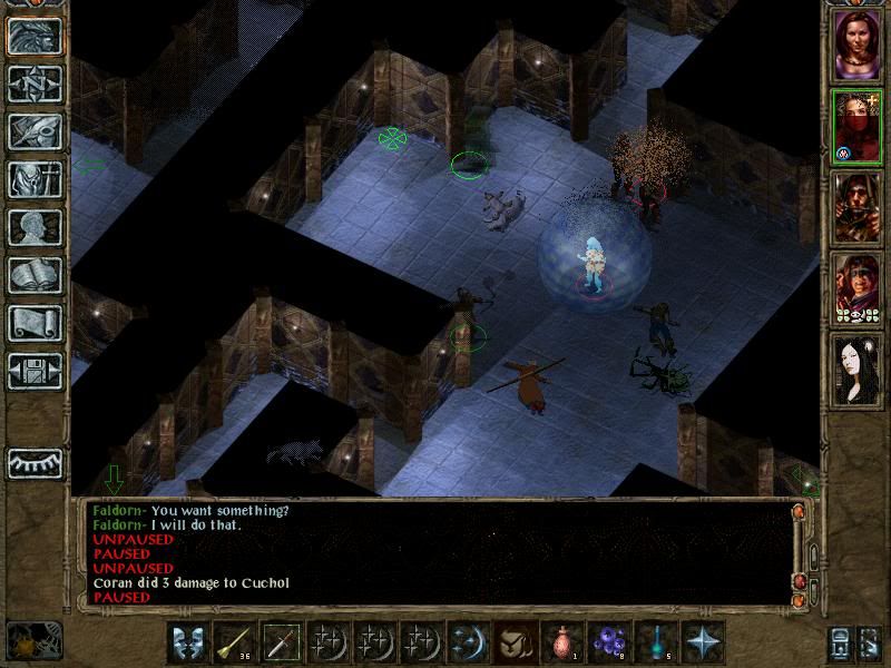 Coran hid in shadows, Ivy cast Invisibility on Faldorn and Imoen and Improved Inviso on herself. I made sure that Coran wasn't the character closest to the exit to preserve his stealth in the next area.