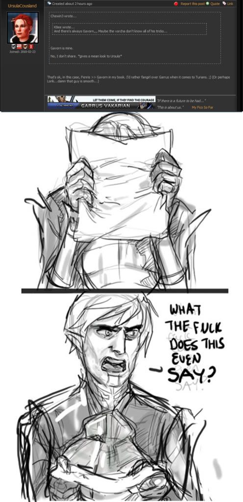 Ooooooh that would be great. I am actually fine with the Femsheps keeping garrus if we get Gavorn instead!... Or maybe Lorik... No! No, last time I had that thought I ended up in hospital...
