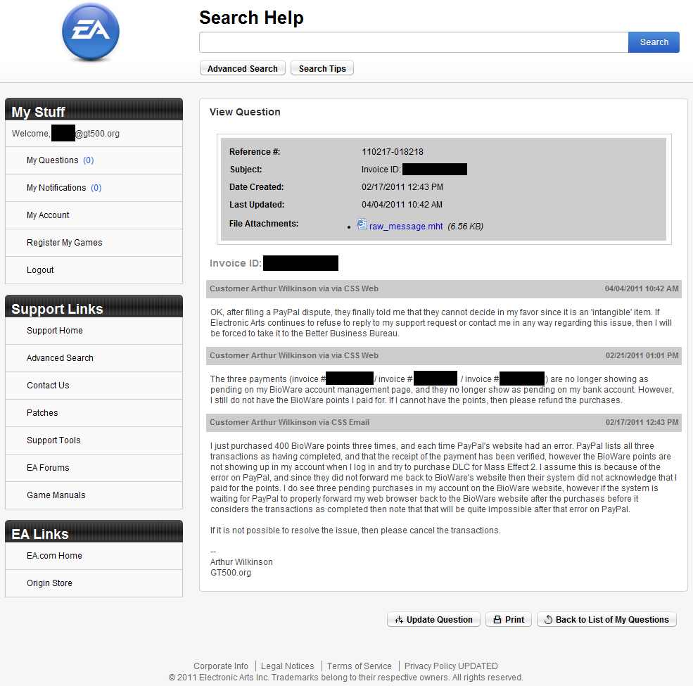 A response from someone at EA! This is a nice change of pace.