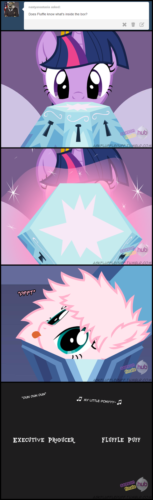 My personal "What's in the box?" guess is that it would be some sort of magical upgrade catered to each of the mane 6, but for what is hard to tell. Sort of like the sailor moon transformation, minus the girly outfits.(That will be left for the power ponies episode XD)
