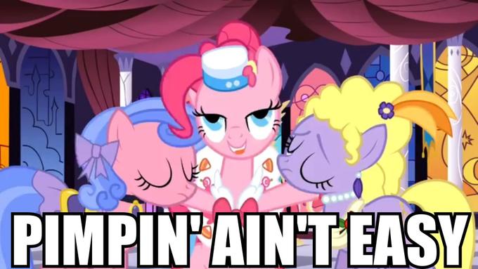 It's a narrow line between good Pinkie and bad Pinkie, and the show tends to stumble back and forth across it. Like Season 2 - Baby Cakes was good Pinkie, A Friend In Deed was bad Pinkie. Too Many Pinkie Pies was sort of on the border. This season we've had several episodes that featured Pinkie primarily or that Pinkie was in some way an integral part of; in large part those have actually been pretty much entirely good (Castle Mane-ia, Pinkie Apple Pie, and especially Pinkie Pride - which at this point is one of the show's strongest episodes), while the episodes that aren't centered on her have had some really egregrious examples of bad Pinkie, like Rainbow Falls and Filli Vanilli.