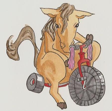 A pony riding a bike. It's so crazy it just might work! Bit redundant though.