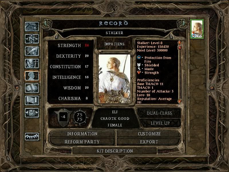 This time the attempt will be made with a stalker that I rolled up for this purpose a week or so ago. If successful he will also continue on into BG2.