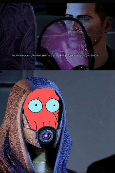 Honestly, the devs shos reveal a Quarians face BUT not Tali's. That it let's the Tali fans run around and make cute little drawings of her face. I want Bioware to create the basics of a Quarian face but let the fans create what Tali looks like for themselves. That way no-one loses, we find out what Quarians look like and Tali's face will not be ruined.