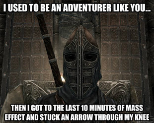 I just can't not think that Bioware were having trouble coming up with a plausable ending, left it untill the day before it went gold and then went, "Oh f%$£!" - Like leaving homework untill the night before they had to fling any old crap together so that they could say that it was actually finished. Even though it wasn't.