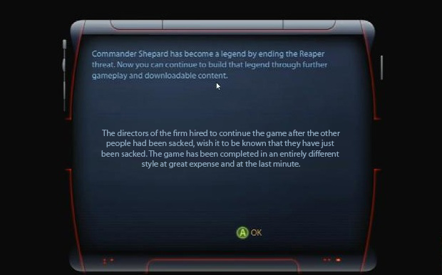 And i was so looking forward to play me3 again, even start from me1 with imports and all. several times even. And i miss it, i really want to play but then i remember how it ends and .....