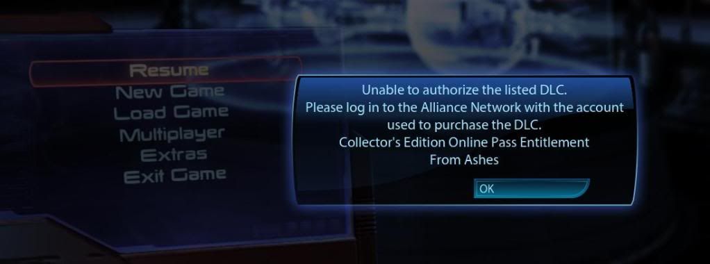 "please log in to the alliance network with the account used to purchase the dlc from ashes"