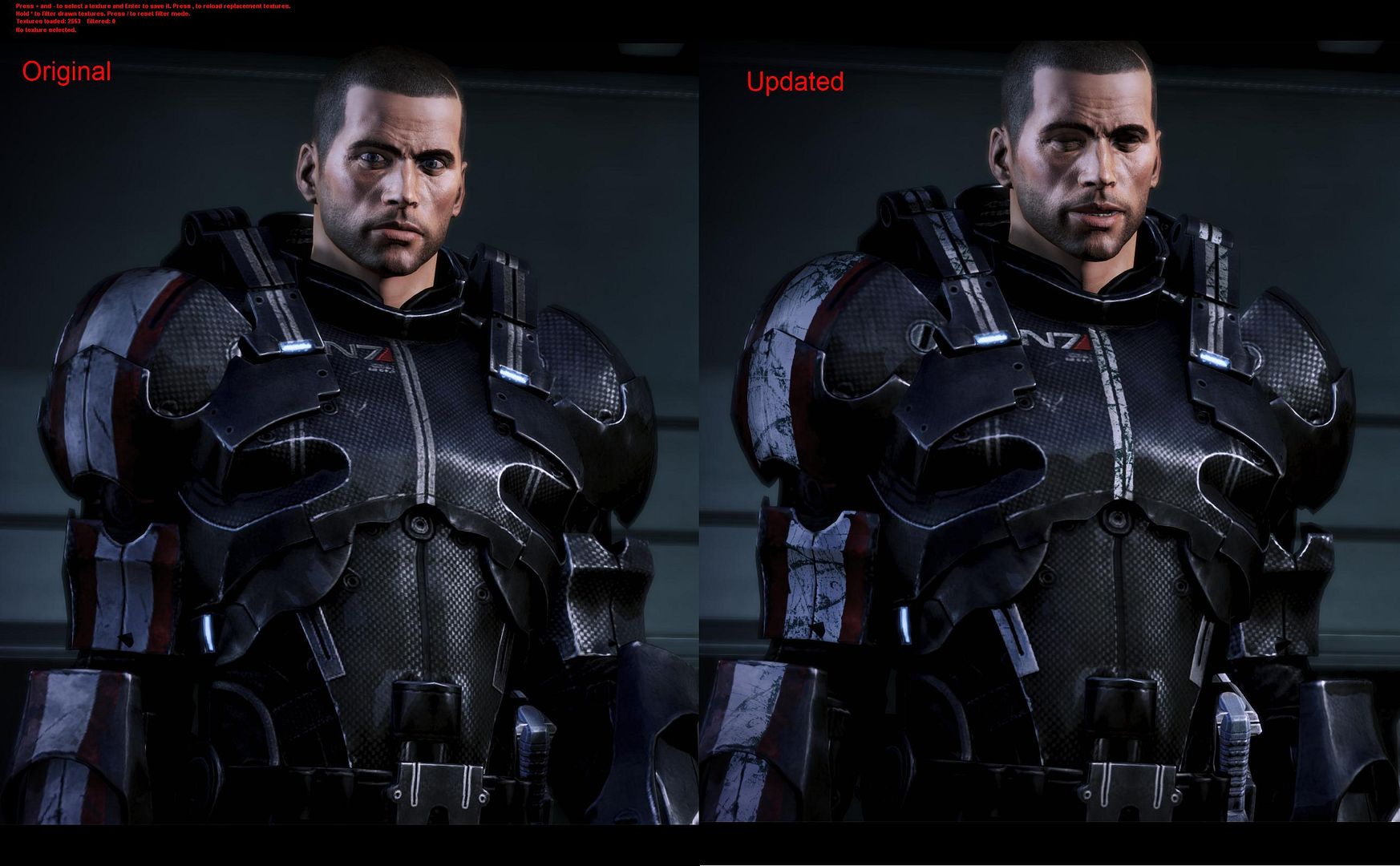 EDIT: Nevermind, about Shepard's textures. I'm retarded. the texture wasn't loading. Liara's was, and I double checked, the one spot I mentioned doesn't look right. Otherwise she looks fine.