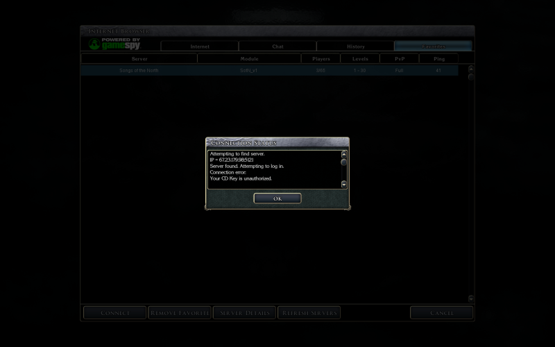I can play the game just fine solo, but when I try to log into a Multiplayer game through GameSpy, I get a "CD-Key is unauthorized" message and I cannot log-in to ANY game.