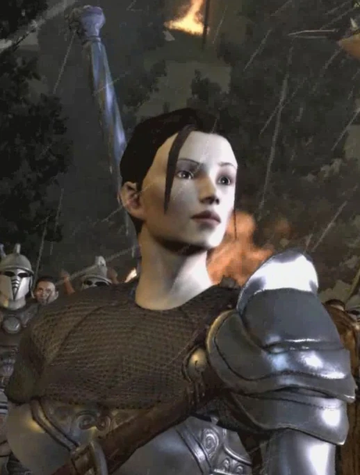 Cauthrien: "As a peasant girl during the Orlesian ocupation, I learned to defend myself. Then I met Loghain, euh I mean Teyrn Loghain Mac Tyre. He taught me how to fight and lead men"