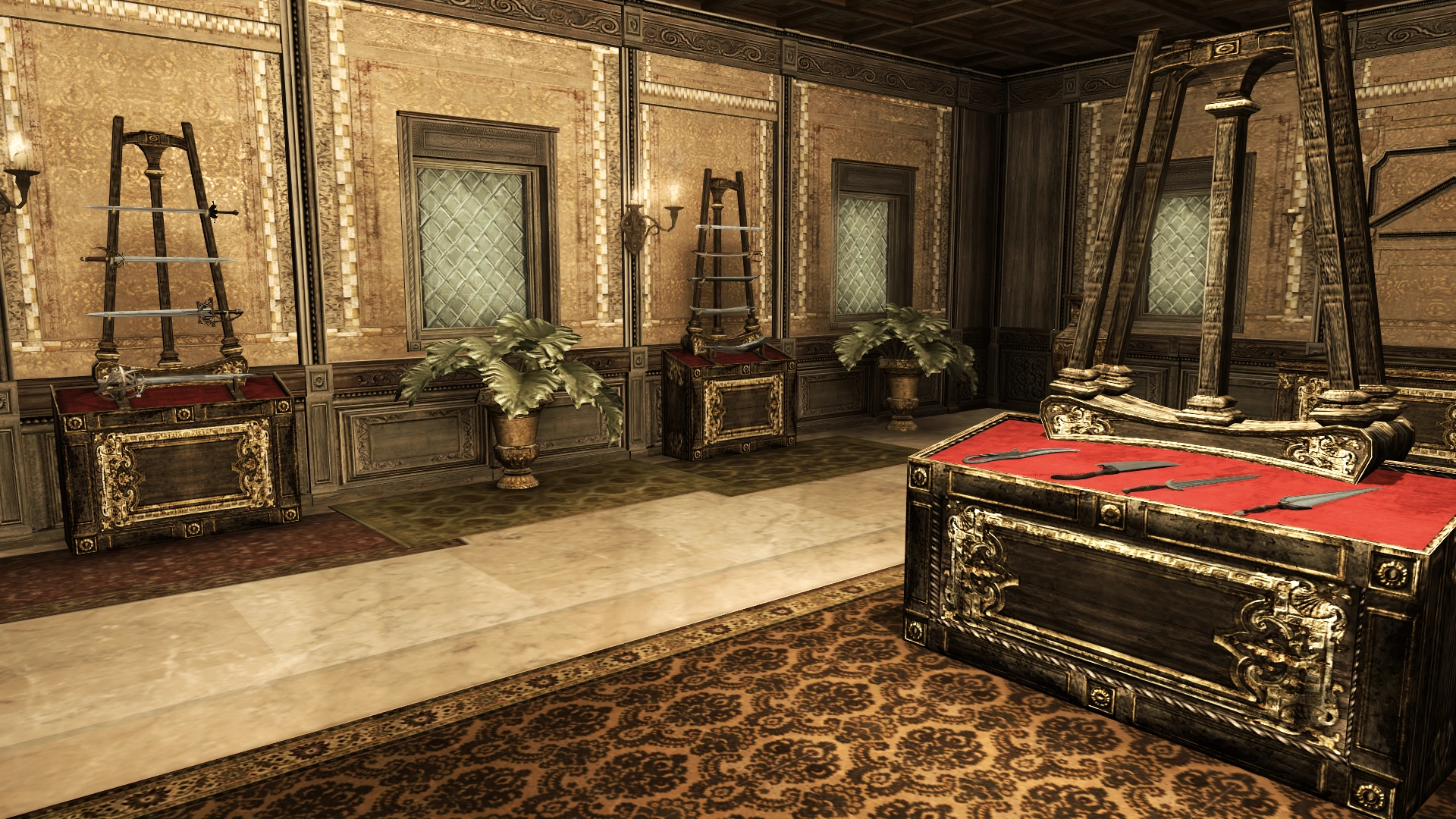 An example with the armory room in Assassin's Creed where are put all the weapons you get/buy in the game: