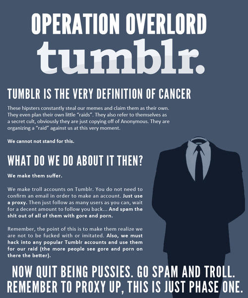 Glorious! Tumblr is one of the only communities I know stupid enough to mess with 4chan.