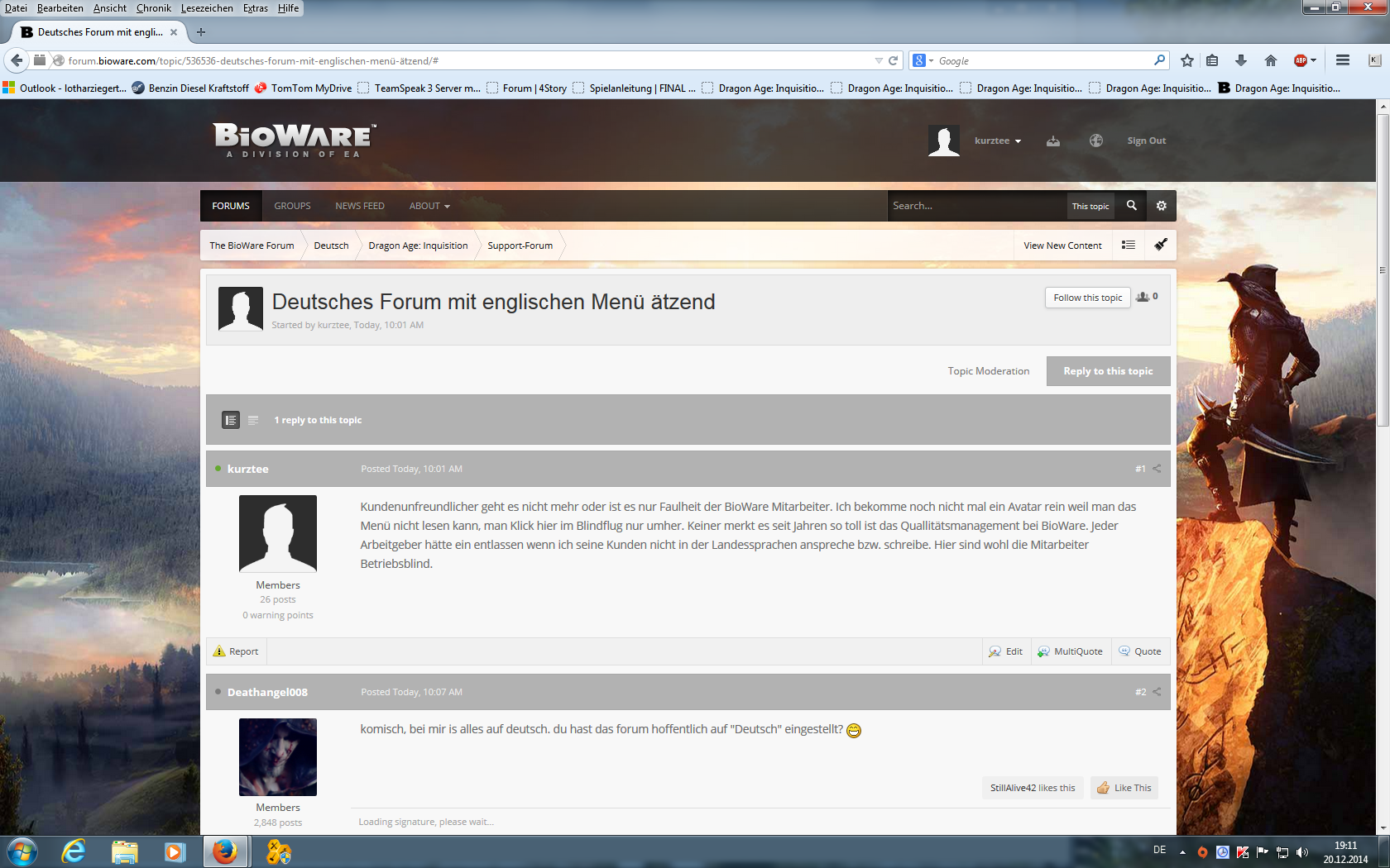 Deutsches Forum mit englischen Menü ätzend