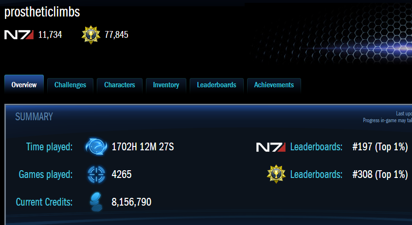 I maxed my manifest years ago, but I decided to look up my hours / games played.