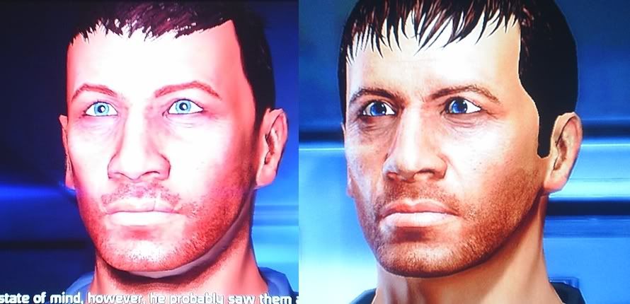 I was surprised when I compared this picture to one I had taken of the same character in the first game. The features are basically the same, but the ME1 version looks more like a plastic doll to me.