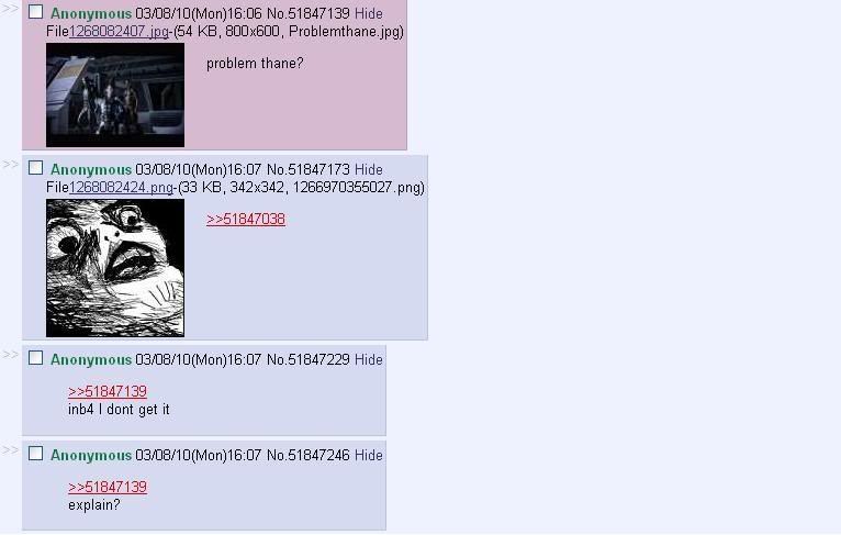 "My bones are aching. That's a common drell precursor to...respiratory illness." why do I have so many images of being mean to Thane, I don't even dislike himMinardii wrote...