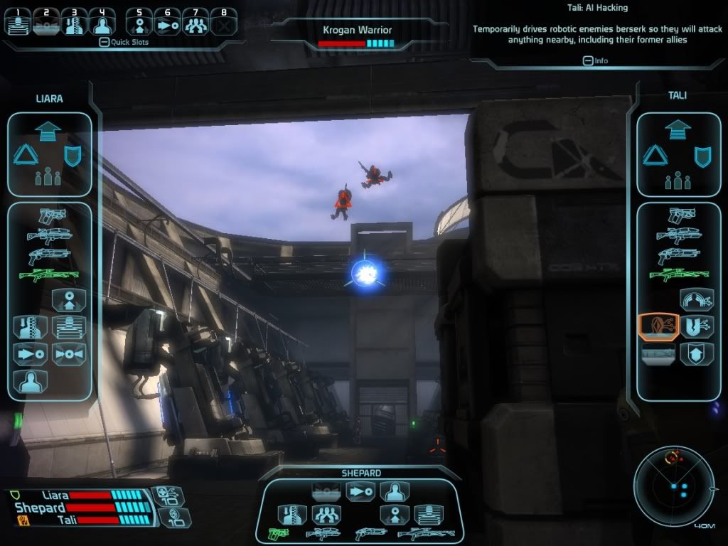 Another trick is that you can actually stack several spells to move enemies higher and higher. Begin with lift empowered by the kinetic energy of the enemy storming towards you, followed by your singularity, followed by Liara's singularity, followed by Stasis to recharge spells, followed by yet another 2 singularities and so forth. There are instant death areas in the game where enemies will immediately die if you can get them there, for example, if you manage to throw enemies over a wall on Virmire/Feros where no textures are present on the other side of the wall, they will immediately die. You can throw them over walls using Throw, the problem here is to actually get them high enough above the ground (to raise them above the wall). I actually managed to throw a Geth Prime and a krogan warlord into instant death areas, raising these heavy bastards high enough above the ground is a terrible pain in the ass, but it does work, you just need to try it again and again.